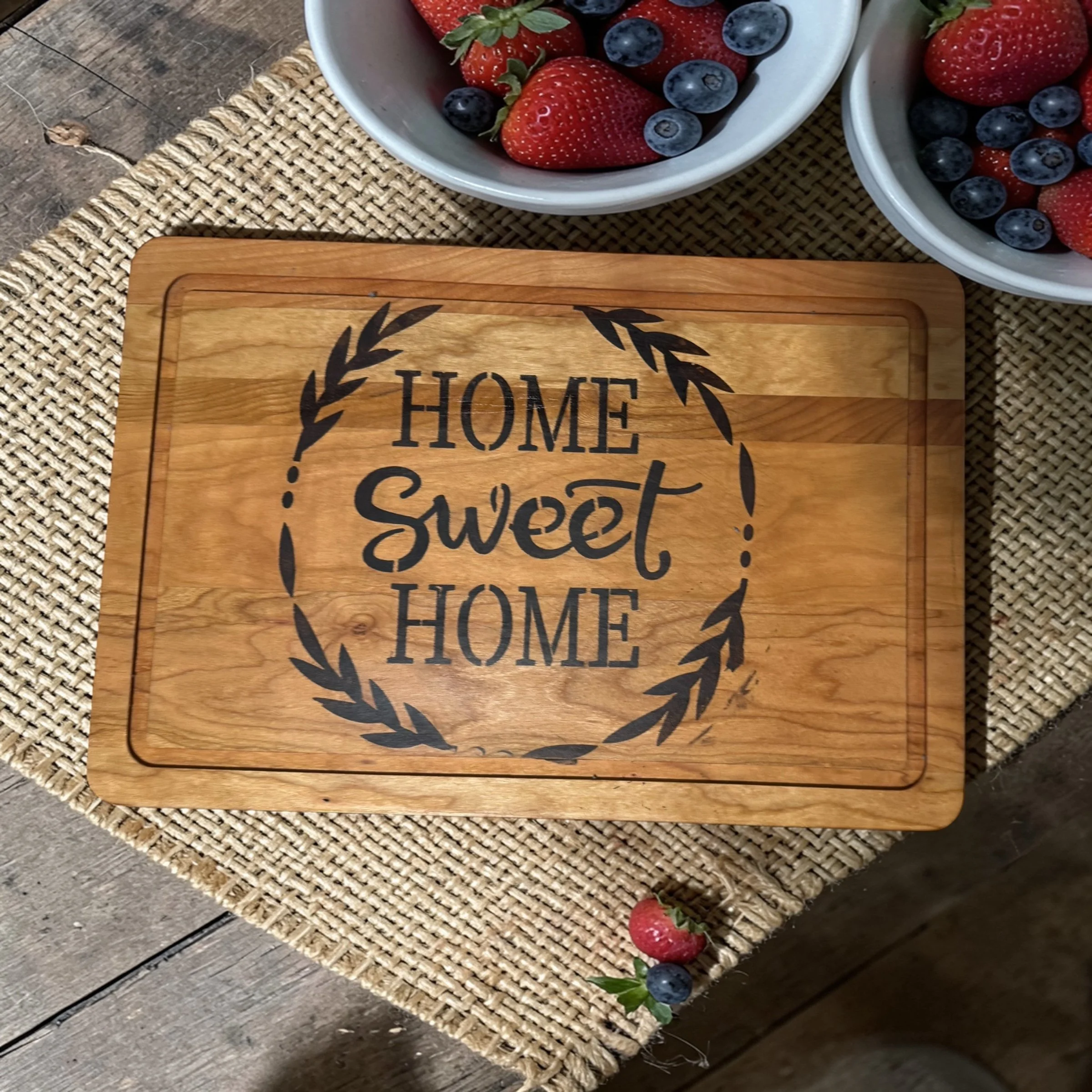 Shop › Cutting board Image 1 of 1 Cutting board $25.00 Cherry wood with burned design Purchase Added! Cherry wood with burned design
